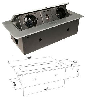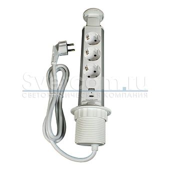 Блок розеток выдвижной круг. d60мм, 16А, 3 поста, 2USB, серебр., провод 1,8м с вилкой