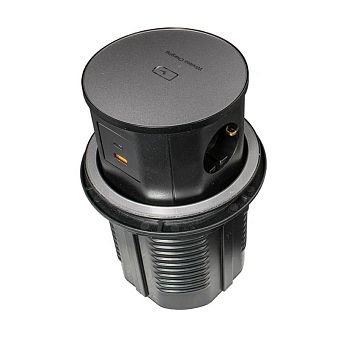 Блок розеток встр. круг. d120мм, 16А, 3 пост, черн., 1USB, 1Type-C, провод 1,8м
