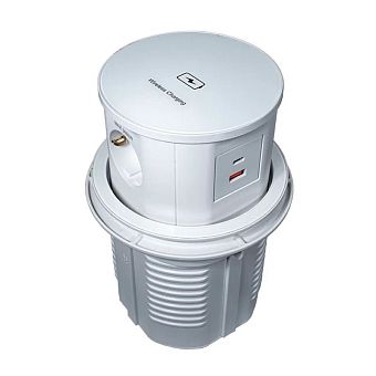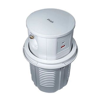 Блок розеток выдвижной круг. d60мм, 16А, 3 поста, USB-А + USB-C, белый, провод 1,8м с вилкой
