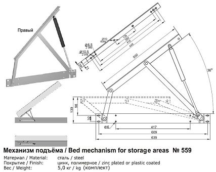 Механизм подъема матраца тахты №559 (без газлифтов)