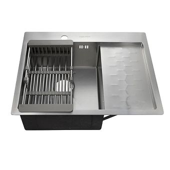 Мойка 63х50 см правая толщина 3,0 х 0,8/200 мм сифон с переливом + корзина