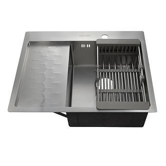 Мойка 63х50 см левая толщина 3,0 х 0,8/200 мм сифон с переливом + корзина