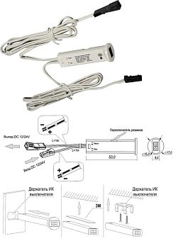 ИК-выключатель-диммер на взмах руки SIR-4-D 8А для профиля под пайку DC12-24В, 55х10мм