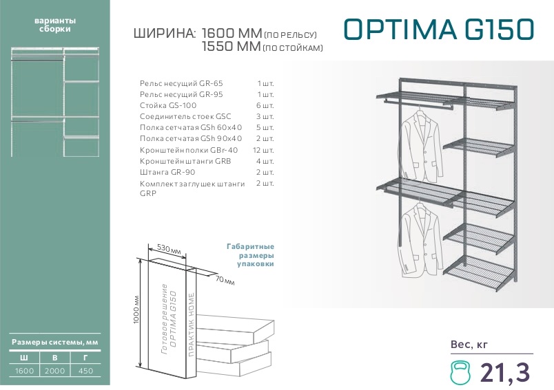 - Саморезы ∅ 5х50 mm (для рельсов) – 12 шт.