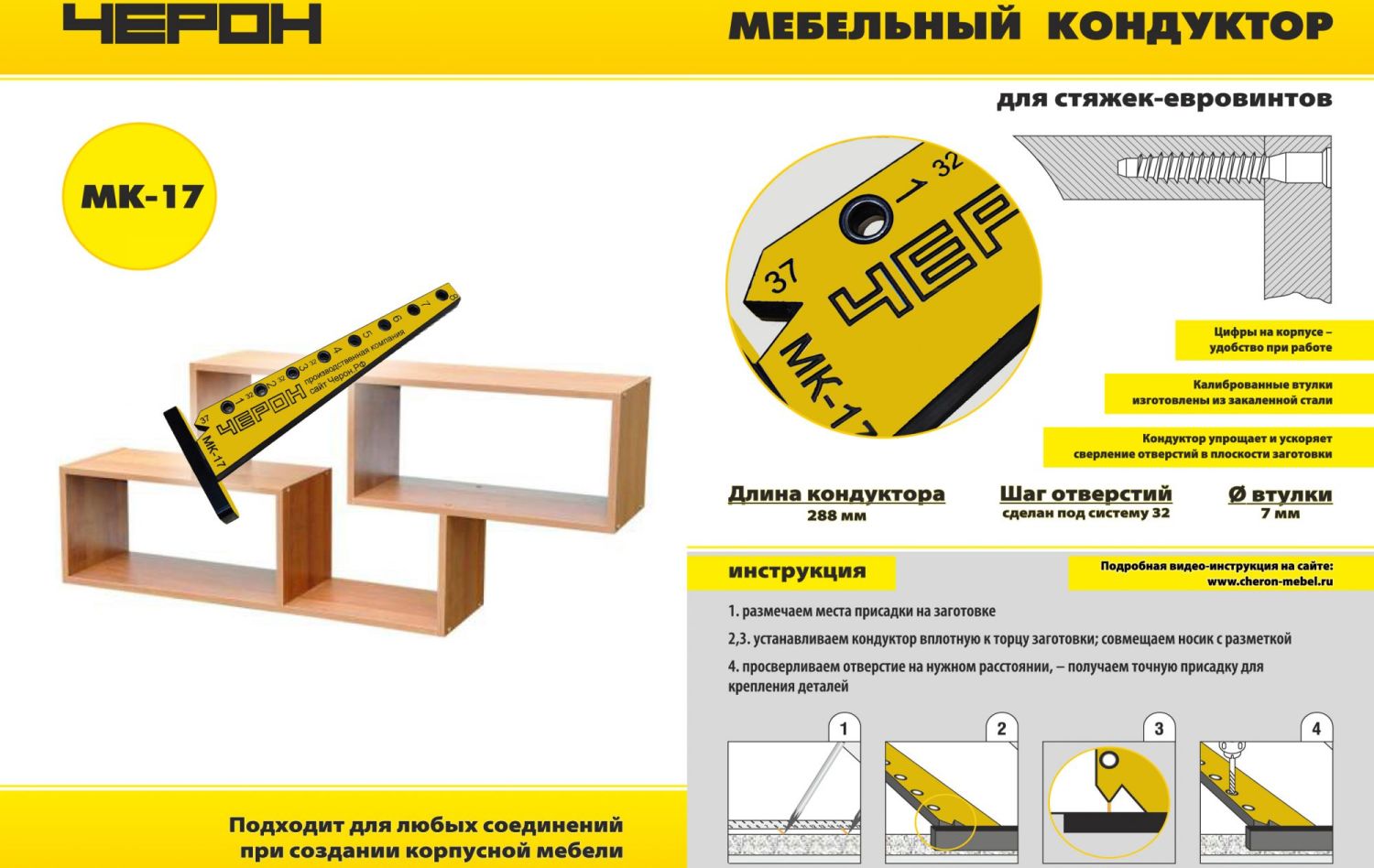 МЕБЕЛЬНЫЙ КОНДУКТОР "УГОЛЬНИК МАЛЫЙ " СИСТЕМА "32" ДИАМЕТР ВТУЛКИ 7 ММ. МОЖНО СТАВИТЬ ШКАНТЫ 7Х30
