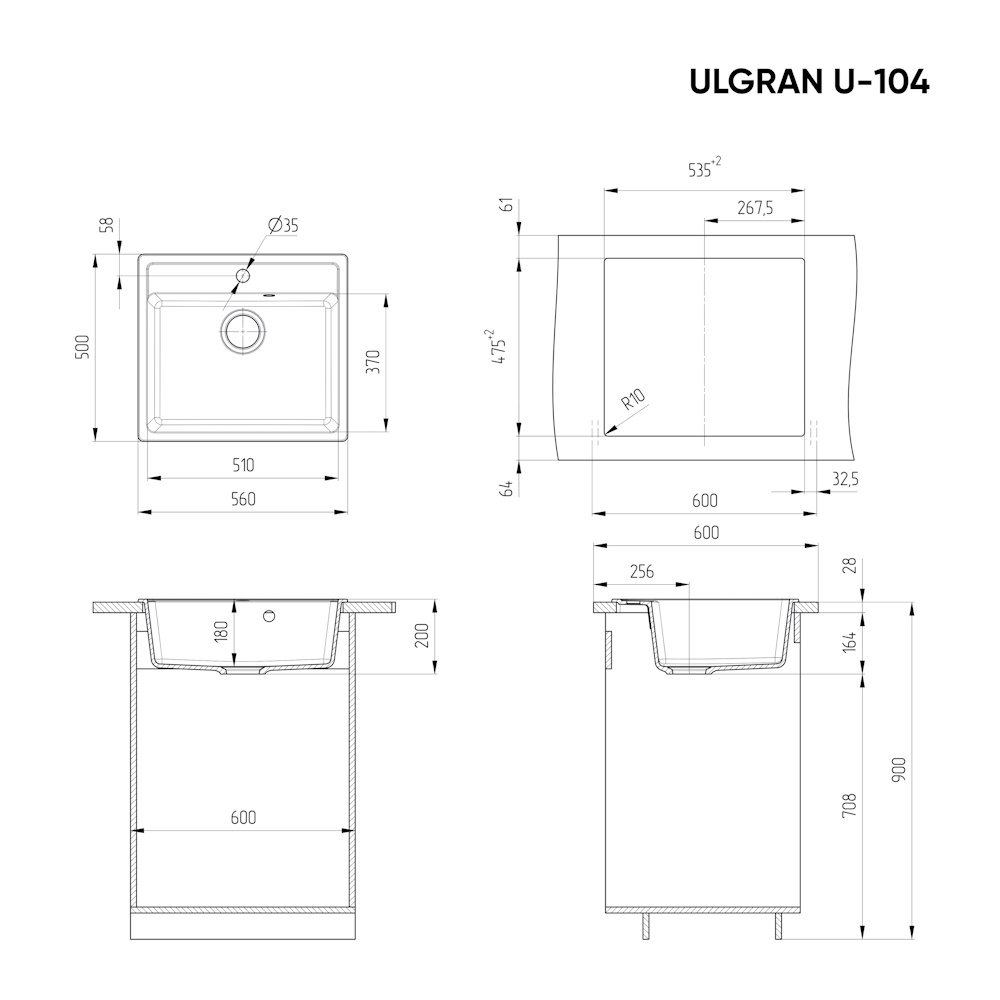 ULGRAN U-104 - односекционная кухонная мойка с отверстием под смеситель. Данная мойка устанавливается в шкаф шириной от 60 см. В комплектацию входит сливная арматура с гофротрубой, технический паспорт и гарантийный талон. Существует возможность установки дозатора ULGRAN или других аксессуаров - доп. отверстие в таком случае потребитель делает самостоятельно с помощью фрезы Форстнера (не входит в комплектацию и приобретается отдельно). Заводская гарантия составляет 4 года, а срок службы данной мойки, при соблюдении основных правил ухода за ней, составляет более 10 лет.