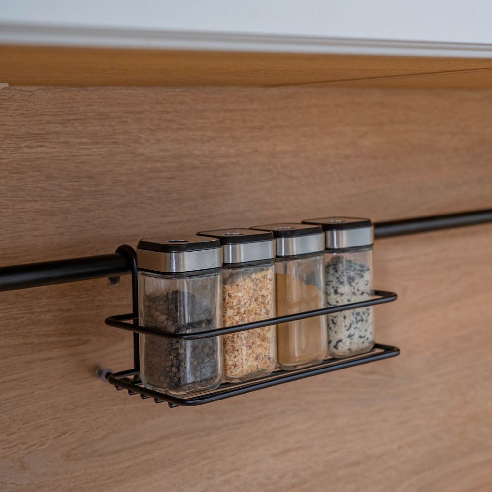 Полка позволяет использовать пространство на стене, освобождая рабочую поверхность. Полка небольшого размера, для самых нужных мелочей. Полка выполнена из нержавеющей стали. Легко и надежно вешается на трубу рейлинга.