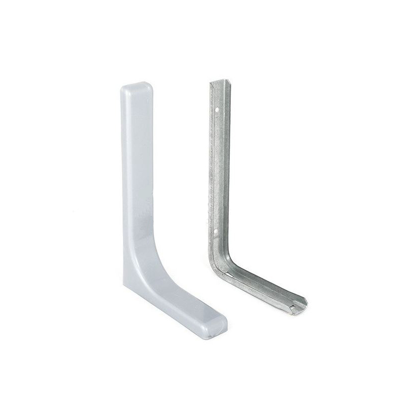 используют для монтажа стеллажей, настенных и внутренних полок шкафов . Кронштейн изготовлен из стали, на который защелкивается цветная пластиковая накладка. Выдерживают нагрузку до 20 кг на пару.