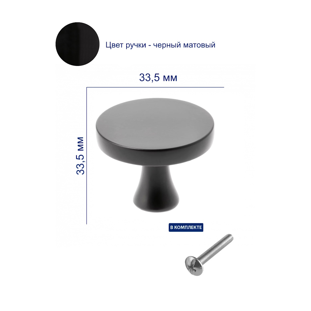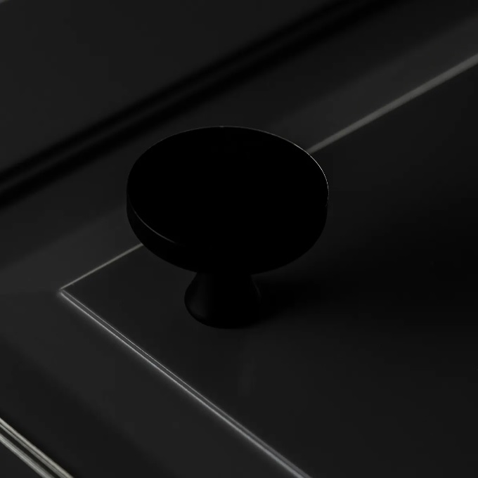 Ручка-кнопка GTV DUNE, выполненная в матовом черном цвете, является изысканным элементом мебели. Ее уникальная форма кнопки с плоской шляпкой добавляет элегантности и стиля, делая её идеальным акцентом для шкафов, комодов и ящиков.